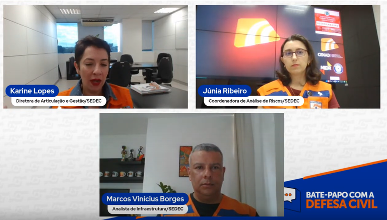 Os representantes da Defesa Civil Nacional destacaram ainda que a organização oferece uma série de cursos gratuitos à distância para habilitar e qualificar agentes municipais e estaduais.