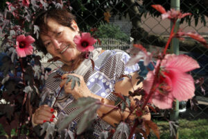 A enfermeira aposentada Meire Maria Pereira fala sobre os benefícios que teve com a horta: “Com depressão, eu usava remédios para dormir e já não preciso mais. A horta me ajudou demais, restabeleci minha funcionalidade”