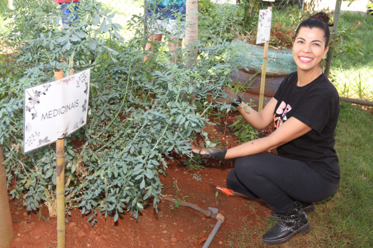 Ao lado da UBS, a horta inclui hortaliças e fitoterápicos. Toda a coleta é dividida entre os integrantes do projeto. No espaço são desenvolvidas também atividades de educação em saúde e ambiental e ações terapêuticas, com as práticas integrativas de saúde de auriculoterapia e automassagem.