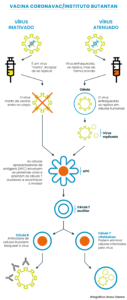 No caso da CoronaVac, a plataforma usada é bastante tradicional, por ser a mesma empregada na vacina contra a gripe. Trata-se do vírus inativado, incapaz de se reproduzir, ou seja, de causar a doença. Com isso, o vírus não infecta a pessoa vacinada, mas estimula a produção de anticorpos contra a Covid-19.