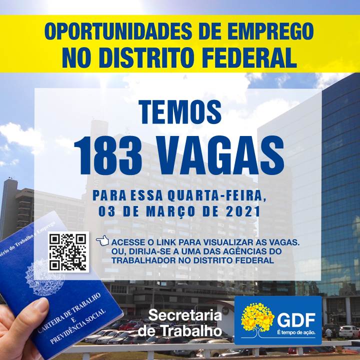 Os interessados em concorrer a qualquer uma das vagas ofertadas podem ir a uma das 15 agências do trabalhador em funcionamento no DF, de segunda a sexta-feira, das 8h às 17h. Elas seguem funcionando normalmente durante o período de medidas restritivas.