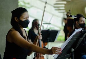 Spalla (violinista principal) da Orquestra Sinfônica, Lílian Rayol manifesta satisfação em poder voltar a atuar junto a seus colegas, após quase um ano do último concerto presencial, realizado em março de 2020. “É muito diferente poder tocar junto, é muito prazeroso exercer a nossa profissão”, diz. “Esperamos que em breve possamos ter o público conosco. O calor do nosso público faz muita falta”.