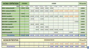 Contudo, 110 milhões de doses da Oxford/AstraZeneca e 30 milhões de doses da CoronaVac previstas no cronograma e que já tiveram recursos alocados ainda não foram efetivamente contratadas, já que o dinheiro não foi pago. Assim, o número de doses efetivamente contratadas até o momento fica em 422,9 milhões. Veja abaixo o cronograma de recebimento das vacinas para o ano: